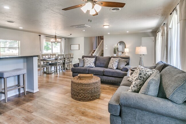 This newly renovated quaint home is nestled on a one-acre lot in a well-established neighborhood in Edmond Oklahoma. Completely new flooring throughout the entire house, as well as new fixtures, brand new furnishings and a freshly built deck. You'll love the open living space that is perfect for families or any small get together. The newly built deck is the perfect area to grill out and enjoy the beautiful mature trees that surround you. After a long day, the master bedroom is the perfect oasis, with a plush Sterns and Fosters mattress that will have you sleeping like a baby. The guest bedroom is sure to impress you, featuring a newly installed barn door. No stone went unturned when completing this house. You'll feel right at home as soon as you step inside!