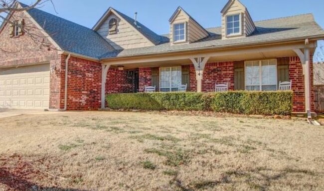 Open floor plan with soaring ceilings, handsome brick fireplace. Spacious kitchen with center island, breakfast bar & eat in area. Large back yard with privacy fence, big patio and front porch. Neighborhood park, pool & ponds. Jenks SCH District. Great location near shopping, dining & close to turnpike for easy commute. Cool off in the Wakefield Community Pool and amenenties for the summer! Text Cristy Single Family 1 Story Brick House