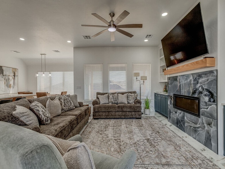 The advertised rate of $7,561/month is the lowest available price, based on a 30 day(s) stay with a move-in date of August 3, 2026. Rates vary depending on the duration of stay, season, and other parameters. For exact pricing and additional pricing components, please visit our website and enter your desired move-in and move-out dates. The rate is applicable when billed upfront; it can be higher if billed in multiple payments. Feel at home in this newly built 3-bedroom luxury home in Medicine Park, offering a peaceful, retreat-like escape in a quiet new development. Just minutes from the Wichita Mountains Wildlife Refuge, enjoy stunning scenery and possible wildlife sightings right outside your door. This home features an open-concept living area, an outdoor patio, and an indoor fireplace. The fully stocked chef’s kitchen includes high-end appliances, a large refrigerator, ample cabinetry, and a large island with high seating. The living room offers a smart TV, a large comfortable sleeper sofa, expansive windows, and a high ceiling. Parking is available in the driveway for a maximum of 4 cars. Located in a newly developed area, this home offers a true sense of seclusion. Guests often spot bison, longhorn cattle, and deer roaming the surrounding area, with deer frequently passing through the property in the early mornings and evenings. Mount Scott is also nearby, providing beautiful views and scenic drives. Enjoy easy access to Fort Sill Key Gate just 14 minutes away and the Lawton city center in 18 minutes. Nearby attractions include Medicine Park, which blends its restored historic charm with boutique shops, creekside dining, live music, and direct access to the Wichita Mountains Wildlife Refuge, the Wichita Mountains Wildlife Refuge, the Holy City of the Wichitas, and Lake Lawtonka. For dining, visit Tu Familia, Meers, Old Plantation Restaurants, and Ann’s Kitchen. As the neighborhood continues to grow, you may notice some nearby construction during daytime hours. No pets are allowed. Stays of 28 days or more may incur an additional cleaning fee. No parties are allowed—violations may result in immediate termination of the stay. An exterior camera is installed solely to monitor the cleaning team for quality and security purposes. Check-in is at 4pm and check-out is at 10am. Guests must be 21 years or older to book this property. [SI]
