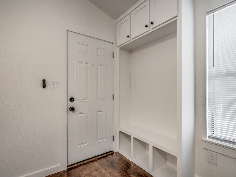 Luxurious and efficient one bed, one bath apartment overlooking Andrews Park and just a short walk to downtown! The entire unit has been renovated from top to bottom with thoughtful design and elegant finishes. Vaulted ceilings welcome you into the unit with plenty of natural light. Refinished hardwood floors can be found throughout the living room and bedroom. Custom mudroom bench tucked behind the door provides tons of storage space. A refinished barn door leads to the bedroom. The kitchen features gorgeous custom cabinets that provide tons of storage with stainless steel appliances, granite countertops, and subway tile backsplash. The bathroom has a extra deep tub, new tub surround and vanity, and a stacked washer and dryer set. The back patio is the perfect spot to unwind in the evening, while the front porch overlooks the recently improved Andrews Park with splash pad, playground, and skate park. Owner/Broker