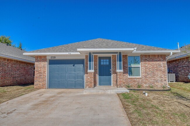 Introducing a brand new construction home in Varenna Landing with three bedroom, two bathrooms and a one car garage with an inground storm shelter. This modern home features a fully fenced backyard, perfect for outdoor activities and privacy. The interior boasts stained concrete flooring in the common areas and carpet in the bedrooms, a neutral color scheme, and lots of natural light, creating a bright and inviting atmosphere. The kitchen is equipped with stainless steel appliances and granite countertops, perfect for cooking and entertaining. Don't miss out on this opportunity to make this beautiful house your new home. Property comes with an inground storm shelter and lawn care is included! Tenant is responsible for all utilities. OG&E, ONG and City of Norman.