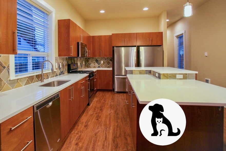 You'll be blown away by how BIG every room of this house is! Each bedroom is a master suite with a private bathroom, PLUS there is a half bath for guests. The kitchen is every foodies dream! There's a gas stove, 2 fridges, ample storage, lots of counter space, a huge dual level island, plus a breakfast bar. We are including a 60" TV, which comes mounted above a gas fireplace for a beautiful ambience in the living room.