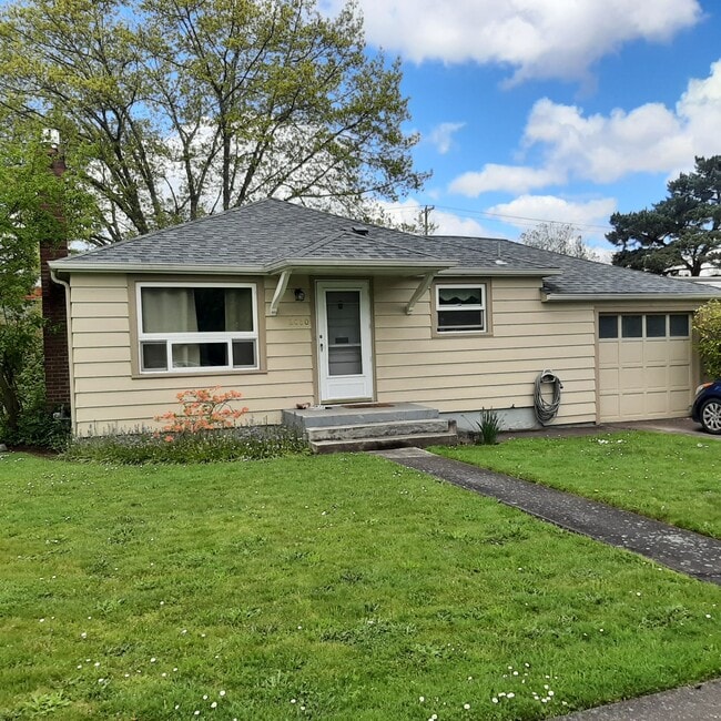 Great 3 bedroom house in Southeast Eugene. Close to the University of Oregon, Lane Community College and South Eugene High school. Three bedrooms (2 are oversized), one bathroom with tub shower combo. The living room has a gas fireplace. The house has hardwood floors throughout except the kitchen and bathroom. The kitchen has the range refrigerator and dishwasher with lots of cabinets. One car attached garage with washer and dryer provided. The home has air conditioning to stay comfortable during the warm weather. Yard care is provided, tenant pays all utilities. Very clean