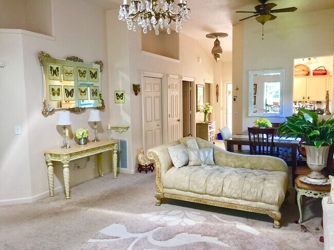 Unique fully furnished sanctuary in very private semi-forest setting - like living in a tree house with high, ceilings, beautifully furnished, extra huge walk in closet, superb neighbors, deer and wild turkey daily, and a small garage! All one level. Quiet, private condo road. Rent discounted by $250/mo if caring for chill, resident cat - no medications, all food purchased and one site. Small garage with some storage. Relaxed yet elegant. You'll love it here! So quiet!