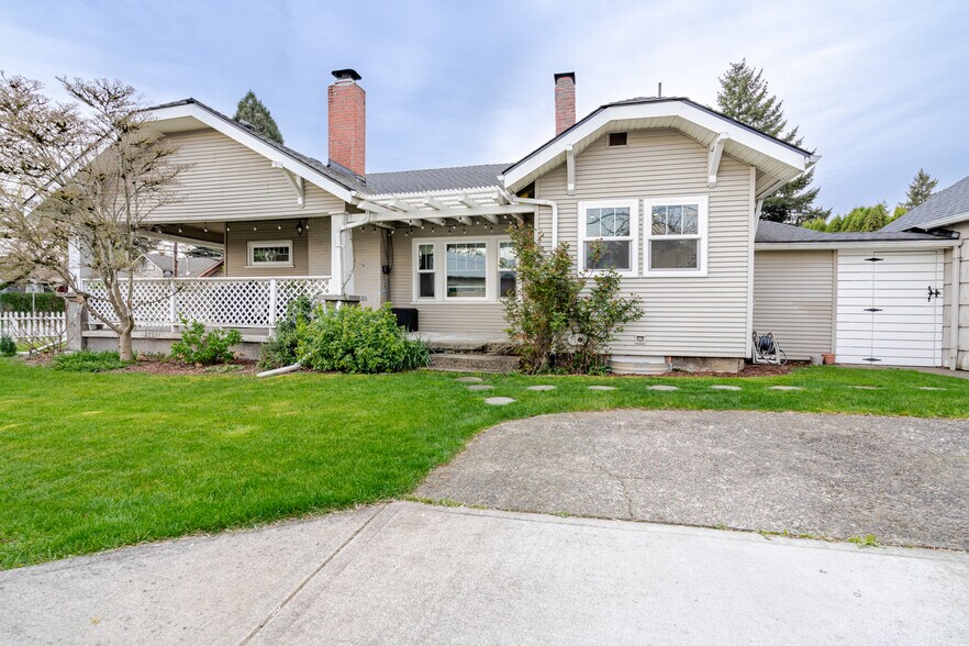 Wifi included! Charming Gladstone home with wrap around porch ideally located for short walks to food carts, library, downtown Gladstone, Clackamas River Trail and more! Rare 2 car garage and separate laundry area (with units) included. Recent updates in bathrooms & kitchen. Wall to wall carpet in living room and bedrooms and new windows throughout. Central heating and a wall A/C for the main room. Grill on the covered porch, or relax in the backyard, this home was wonderful for us and we hope it will be for you too. 2 off street spots for parking (or in the garage if you prefer), driveway has 4 spots total but 2 are reserved for the basement apartment (currently rented). Units are totally separated and the only shared space is in the backyard. Flat $100 utility fee covers water, sewer, garbage, gas, electric. Sorry no pets due to carpet :( Also, furniture not included.