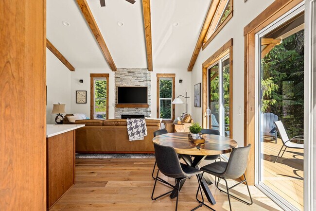 Feel at home in this 7-bedroom house in Government Camp, OR, offering everything you need for an amazing vacation. This spacious getaway combines two beautiful homes rented together, giving you a total of 6 bathrooms and room for up to 22 guests. This retreat features a fully stocked kitchen in each house, one with high-end stainless appliances, ample cabinetry, a large refrigerator, and a Cuisinart coffee maker, and the other with high-end appliances, ample cabinetry and cooking space, and a drip/K Cup combo pot. The main house has a living room with a 70" smart TV, large plush and leathered sofas, expansive windows, and a high ceiling “Juliette Balcony” overlooking the living room. House B has a living room with a smart TV, a large leather sofa and seating, an indoor fireplace, and direct deck access. Enjoy amenities such as a hot tub, fire pit, sauna, board games, video/arcade games, an outdoor patio/dining area, an indoor fireplace, plush beds, a washer and dryer, and ample parking. Nestled along US-26, this retreat offers easy access to year-round adventure. Nearby attractions include Timberline Lodge (~6 miles), Trillium Lake (~4 miles), Mirror Lake Trailhead (~0.4 miles), Mount Hood Ski Bowl (~0.5 miles walking distance), and Mt. Hood Adventure Park at Skibowl (~0.5 miles walking distance). Dining options include Charlie’s Mountain View (~0.2 miles), Glacier Public House (~0.3 miles), Huckleberry Inn (~0.3 miles), and Mt. Hood Brewing Co. (~0.5 miles). Renting a car is recommended, and 4WD is recommended during winter months. Check-in is at 4pm and check-out is at 10am. No pets are allowed. No parties are allowed—violations may result in immediate termination of the stay. An exterior camera is installed solely to monitor the cleaning team for quality and security purposes. Parking is available in the driveway and garage for a maximum of 12 cars. Guests must be 21 years or older to book this property. Bedroom 5 in House B includes a dedicated workspace. [SI]