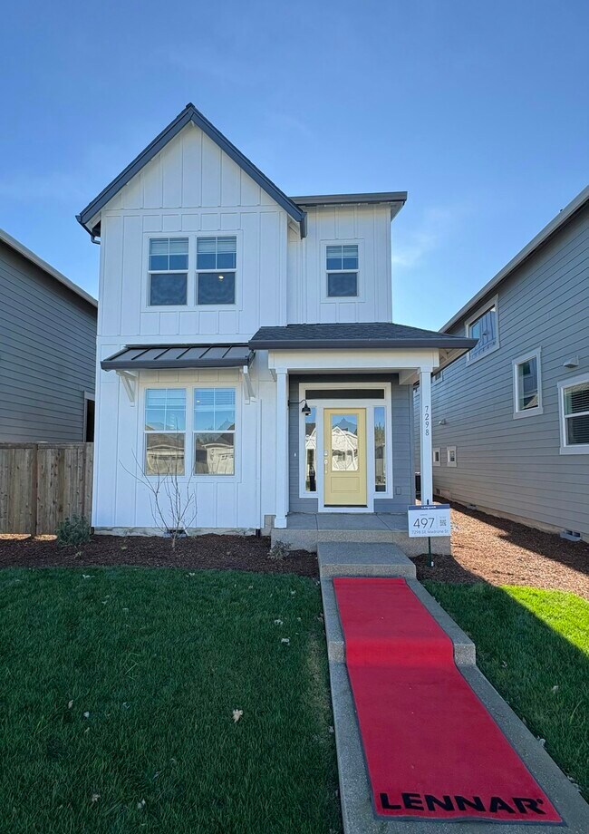 Brand new move-in-ready Lennar Natalia plan in the Butter Nut Creek community, with 1,496 sq ft of living space, offers a bright two-story layout with an open main floor where the kitchen, nook, and great room connect effortlessly. Upstairs, all three bedrooms are located together, including a spacious primary suite with a walk-in closet and en-suite bathroom. Featuring three bedrooms and 2.5 bathrooms, this property is perfect for those seeking a comfortable, spacious home. The kitchen has modern appliances and ample storage space, including pantry shelves, making meal preparation a breeze. The bedrooms are well-appointed, with plenty of natural light and closet space. The bathrooms are beautifully designed with sleek fixtures and finishes. Includes front door smart lock, central air conditioning, a refrigerator, a washer, and a dryer. A two-car garage comes with an EV charging port and a driveway for more parking. The property is located midway along Madrone Street, a quiet, traffic-free street away from business areas. Located just 6 minutes from the Intel Campus and under 15 minutes from Topgolf, the Butternut Creek community features a dog park, basketball court, playground, and nearby parks with picnic areas. Providence Health Center is right across the community. 7298 SE Madrone St, Hillsboro, OR 97123 Google Map link- Homesite 497 Don't miss out on the opportunity to call this house your home. Lease term 15 months. Schedule a self-guided showing today with and experience the comfort and convenience this property offers.