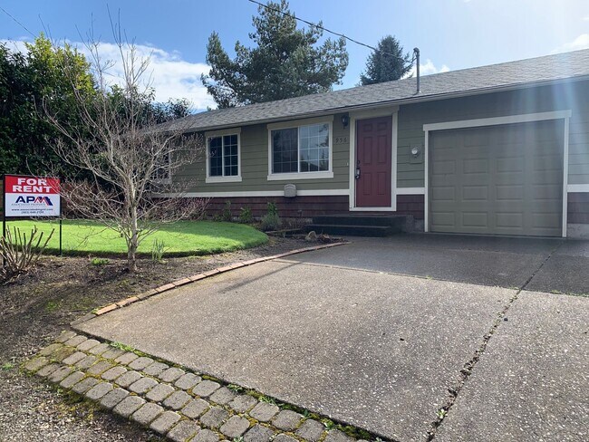 056---Quaint ranch style home with hardwood floors and a large backyard with oversized patio. The kitchen is equipped with a refrigerator, dishwasher and range. Electric wall heat, single garage. Monthly landscaping fee of $150. MAX of 1 pet under 30lbs allowed with $500 additional deposit
