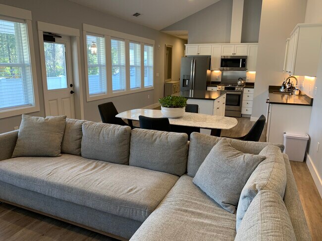 This apartment feels more like a condo given its high-end finishes, large decks and uniqueness. State-of-the-art appliances: gas cooktop, Gas fireplace, ceiling fans, quartz counter tops throughout, large decks, lots of windows, raised ceilings, walk-in bedroom closets; Abundance of storage; Double sinks in master and full tile shower; Smart home features: fob door locks & thermostats; Units are on the 2nd floor