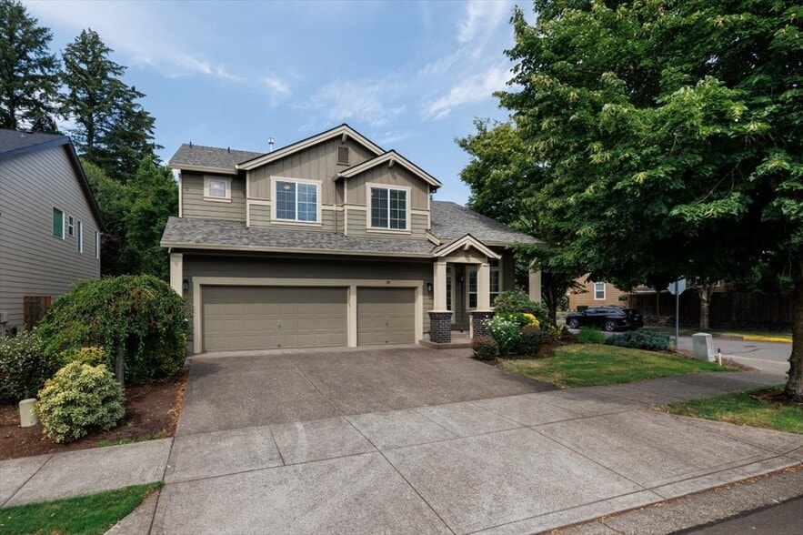 We have endeavored to totally updating the interior of this home. We have new plank flooring throughout the first floor and high density new carpet on stairs and second level. The interior is freshly painted a sand/beige (Note, some pictures look grey.) This corner located home is off any high traffic and is quite private. The back of this property is a non-buildable treed property that simply adds to quietness. It is a three bedroom and three full bathrooms, all counters are new granite, has both formal and informal eating areas, family room open to kitchen so conversations are a shared experience, a large den/office on first floor and a even larger flex room is upstairs. New fixtures, new lighting, kitchen is gas, utility room with washer/dryer, new roof and the smell of "fresh". A floor plan is attached under photos. Call if questions or interest.