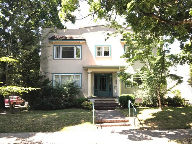 Just a block away from Irvington Elementary School grounds, near NE Broadway eateries, boutiques, restaurants, cafes, and grocery stores. Access downtown across Broadway bridge, and I5 and I84. Hardwood floors, AC, forced gas heating, fireplace, onsite personal storage, onsite laundry, and a shared, fenced backyard.