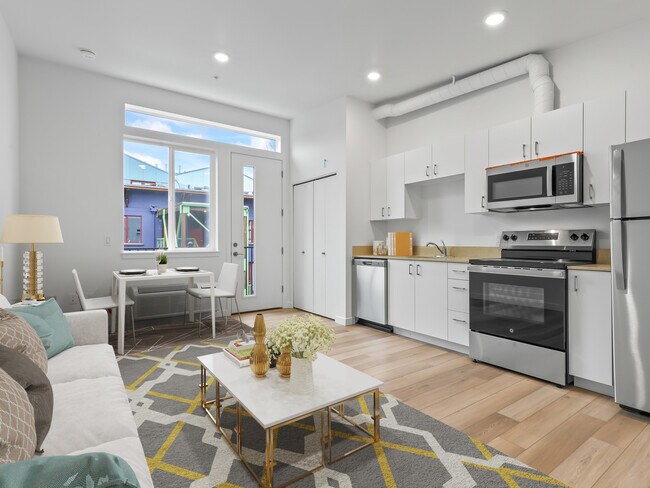 Now leasing: An inclusionary housing studio! This thoughtfully designed studio features luxury finishes, in-unit washer and dryers, air conditioning, and brand-new appliances. Many units boast private balconies, and top-floor residences offer stunning views of the city. For those seeking affordable options, 311 Graham also includes select Inclusionary Housing units, offering the same modern design and access to all building amenities.