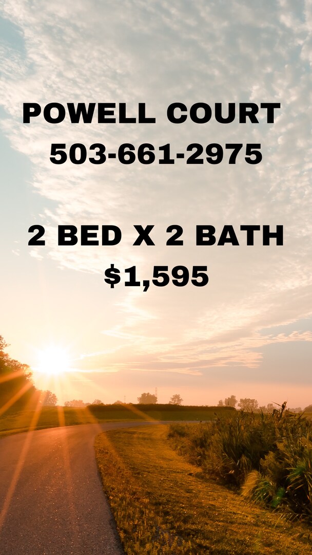 Welcome to Powell Court Apartments & Your new home!! We have 1, 2 and 3 bdrm apartments Call us TODAY for details and schedule a tour! Apply online at: Each of our units comes with the perfect Galley style kitchen for entertaining, great spaced living room, your own patio, full size washer and dryer, a parking space that's all yours, a wonderful dog park, playground and lots more! Call us today to set up a tour at We are open from 10am-5:30 pm, Monday to Friday. Community Amenities: -Dog Park -Playground -Rentable Garages -Easy access to freeway, public transportation, and shopping -Assigned parking spot -Pet-friendly, (breed restricted) -On-line rent payments and resident services -On-site maintenance -Professional Onsite Community Management team Apartment Features: -Galley style kitchen -Separate Dining area -Balconies/patio w/storage -Laundry room in unit -Full size Washer/Dryer -Garbage disposal -Updated appliances & lighting -Lots of closets for indoor storage What are the other costs? $49.95 application fee pays for the screening. $500 Security deposit OAC- Up to one months rent depending on credit $65 Monthly Pet Rent $175 Monthly Garage rent Monthly water/sewer/trash based on usage Give us a call if you have any questions at We are open from 10am-6pm, Monday to Friday. Our community office is located next door at our sister property Sterling Park at: 16804 SE Powell Blvd Portland, OR, 97236 Southeast Portland, Garage available 1, 2 & 3 bedroom, playground, parking, w/d, new appliances, upgrade, SE Portland, Near Gresham, near shopping, near bus lines, near transit, near bus lines, private balcony, Pet friendly, dog park.