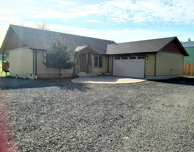 This beautiful single family home built in 2012 is located in the country, but just a 5 minute drive to town. The property includes a large 1+ acre fenced yard, RV storage pad, lots of room for parking and an oversized 2 car garage. The home has an open floor plan with vaulted ceilings, new stainless steel appliances, reverse osmosis filtered water tap on demand at sink, a propane fire place, a 20K propane back up generator (so you are never without power), a spacious covered deck with skylights and many beautiful views. Pets are accepted upon approval (pet rent required). Landscaping is included with the rent, which includes all lawn care and tree maintenance. Deposit (twice the rent) can be made in payments with at least one half paid upon move in($300 is non refundable for cleaning).