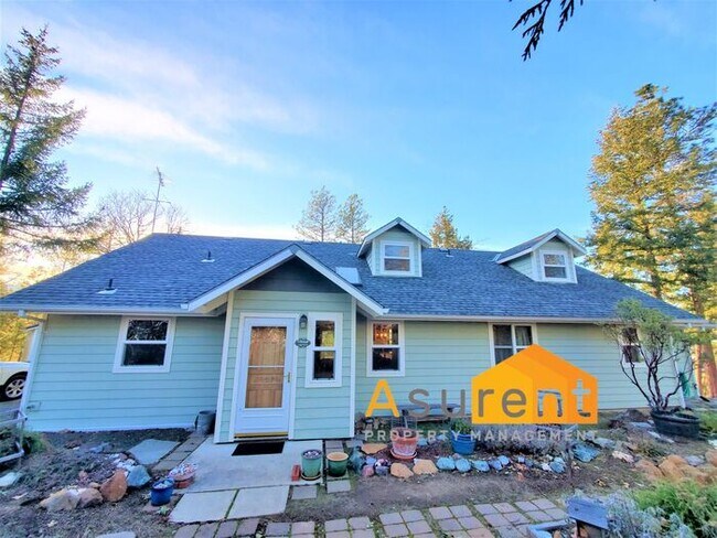 This secluded hilltop property overlooks Medford and Talent and offers some of the best valley views you can imagine. See across the entire Rogue Valley and at night watch the city lights twinkle in the distance from your serene home in the woods. This fully custom property is sure to please. As you enter the home you will immediately notice the warm hardwood floors welcoming you in to the large, open living space which is accompanied by wood accents throughout that were hand milled from the properties natural surrounding lumber. While featuring central heating and air this home also features a wood burning stove great for cozying up next to with a book or tablet on these chilly nights. Off the main living area on one end of the home is the large master suite and bathroom featuring a large clawfoot tub and walk in shower. On the other end of the home you find another bedroom and the stairs leading you up the the loft/rec room. This carpeted room runs the length of the house and would be great for a TV/entertainment room or...? The possibilities are endless with this gem of a home, you surely do not want to miss this one! AWD/4WD highly recommended. The home has a septic system and a well. Pets considered with additional deposit. Utilities included: Sewer, Garbage Visit for more information, to schedule a viewing, or to apply today! Video Walkthrough: Contact us to schedule a showing.