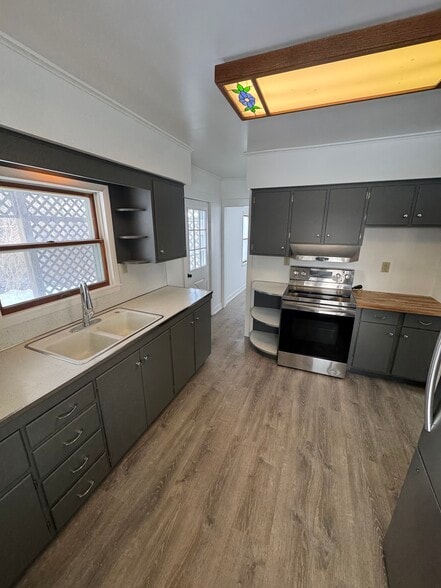 Completely remodeled, very large, 3 bed/1 bath home. We just installed new flooring and carpet throughout the entire home. All new appliances in the kitchen as well as fixtures in the bathroom. The home also has a full basement underneath with built in storage and a washer/dryer hookup.