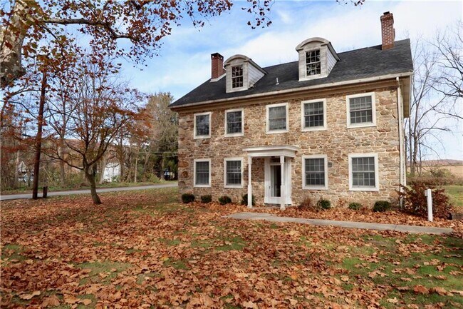 FOR RENT! This beautifully remodeled stone farmhouse is available ** for rent ** only minutes from the Center Valley Promenade Shops and Saucon Valley Country Club! It is situated on a large, flat, 1 acre lot (surrounded by farmland) and has 3 bedrooms and 2.5 bathrooms. The large, bright living room features a gorgeous stone fireplace and plenty of space for relaxation. The 1st floor also has a spacious dining room, den/office area, powder room and completely remodeled kitchen with granite countertops, stainless steel appliances and laundry area. Upstairs you will find that the primary bedroom is gigantic and features 2 walk in closets and fully renovated bathroom with dual vanity, glass shower doors and dual shower heads. There are 2 additional large bedrooms and full bathroom that complete the 2nd floor. This home has central AC, propane heat, and plenty of storage in the basement. Easy access to all major routes, I-78, Route 309, 476. Landlord pays for lawn care and sewer. Tenant pays electric, propane heat and water. Schedule your showing today!