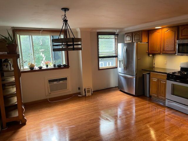 If you like to entertain dont miss this one. An Airkite. Large Fro t yard for this End of Row. Upsteos to a nice size Living Room with sliders to side yard equipped with a Jscuzzi/Hot Tub. In a corner is a gas fireplace forward to a combination Dining Area Kitchen. To your front in Living Room you have a Biw Window to a Bay Window in Dining Room. In the Warner West Format you have 3 Vedrooms and full Bath upstairs. Large basement with over 400 added square Feet. Throughout house is a mix of Mechanical floors, carpet and tile. Large yard in back provides ample parking abd added space and shared space. Possibly on your short list.
