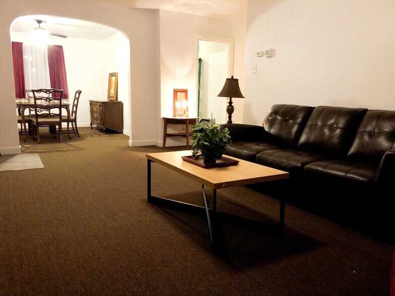 Large furnished 2 Bedroom/1 Bath pet friendly 2nd floor apartment with yard & private parking. Lovely furnished and fully equipped apartment located on a quiet residential street in a single-family duplex. Very bright extra-large LR with desk area, separate DR, quant retro kitchen, big BRs both with blackout curtains and double closets, additional nice-sized closets in bathroom and LR. Unit has central air, plenty of windows for natural light, carpet throughout and washer/dryer. Close to multiple local hospitals and universities, public transportation, shopping and restaurants. Only 5-minute drive or 12-minute walk to historic downtown Lansdowne which boasts a thriving mix of businesses, a vibrant arts community and hosts many public events throughout the year. -Furnished & fully equipped, Rent is $2400 for 1 month minimum (owner pays utilities e.g. water/gas/electric/wi-fi). -Second floor apartment includes private driveway parking for up to 2 vehicles. -Lawn care/snow removal handled by owner. -Yard is common area shared with first floor long term tenant. -If applicable, a non-refundable pet and/or cleaning fee is charged. -Insurance guidelines require tenant to maintain a small personal liability insurance policy (100K). Policy documents to be provided electronically prior to move in. -Application, lease signing, documentation, payments and maintenance requests are handled electronically. Immediate occupancy available once application process complete.