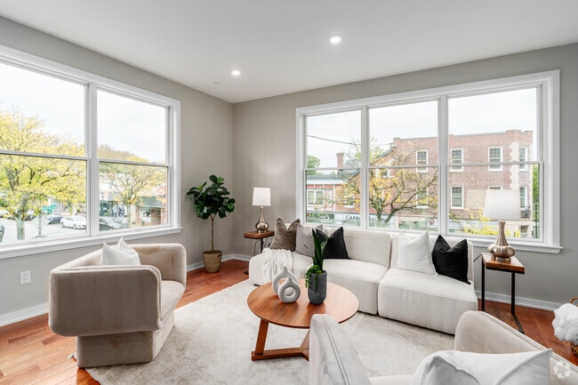 Brand new construction in Narberth offers the best of luxury living in the heart of the Main Line. This boutique building, featuring just 8 thoughtfully designed residences, is ideally located right across from the train station, offering unmatched convenience for commuters and locals alike. This bright and airy 1 and 2 bed apartments feature soaring ceilings and oversized windows ”blinds included” that flood the home with natural light. High-end finishes throughout include quartz countertops, hardwood floors, stainless steel kitchen appliances, and an in-unit washer and dryer for everyday convenience.