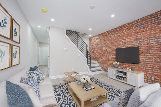 2BR/1.5BA Grey's Ferry, FULLY RENOVATED! - Completely Renovated 2 bed/1.5 bath Townhouse in Grays Ferry! Enter into the open living room complete with exposed brick, hardwood flooring and recessed lighting. Continue into the bright and airy kitchen featuring energy efficient stainless steel appliances, gas range, quartz countertop and access to the rear yard. Upstairs you will find 2 large bedrooms and a light filled full bathroom with custom tiling and a skylight window. The house also has plenty of storage space in the basement as well a Washer/Dryer included! This property is optimally nested in the heart of South Philadelphia and is only a short walk away from Washington Ave and The Fresh Grocer, Rite Aid, and Chase Bank along with many other shops and restaurants. Additionally, the property is conveniently literally steps away from the bus stop offering easy access to anywhere in the city