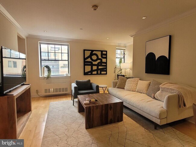 Meticulously appointed one bedroom on a high floor boasting breathtaking sunset city views! Steps from Rittenhouse Square, this west-facing one bedroom has many designer finishes and features throughout. Enter the home through a foyer with excellent closet space that leads to the light filled great room. The great room has oak wood floors and crown and baseboard moldings throughout. Adjacent, the modern kitchen has granite countertops, wood cabinetry and stainless steel appliances. The bedroom enjoys a wall closet, carpeting and a nearby marble-appointed bathroom with a single vanity and shower/tub. Additionally, the home has a stackable washer/dryer. Residents of The Warwick enjoy the same amenities as guests of The Warwick Hotel, which is on the thirteen bottom floors of the building. Amenities include a 24-hour doorman, state-of-the-art fitness room, and for an additional fee: maid service, room service, and valet parking.