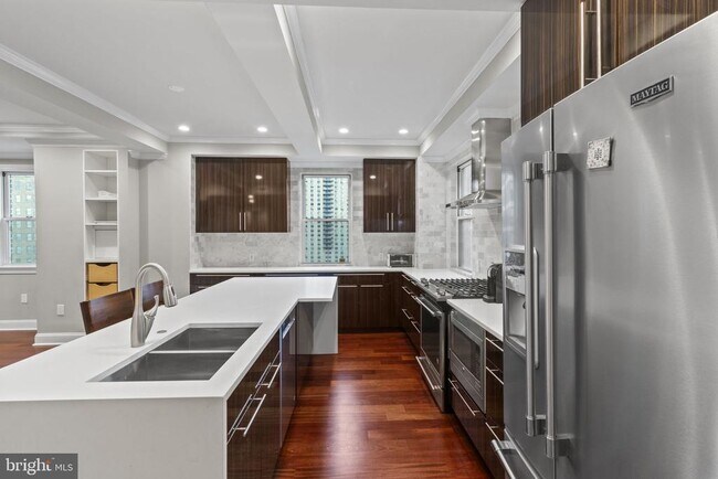 Beautifully renovated 3 Bedroom apartment in the heart of Center City, directly across the street from Rittenhouse Square. Highly sought-after large C floor plan in the 24-hour doorman building Rittenhouse Plaza. This unit features hardwood floors throughout, quartz countertops, stainless appliances, full size washer/dryer, ample closet space, private patio off the kitchen and beautiful views of the skyline. Two of the bedrooms are large enough for king size beds and the master bedroom has a walk in closet with custom fit shelving. Enjoy all Center City offers at the tip of your fingertips. Walk to work, shopping, restaurants, bars, museums and more. Minimum 2 year Lease. Don't hesitate, book a showing today. This unit won't last long!