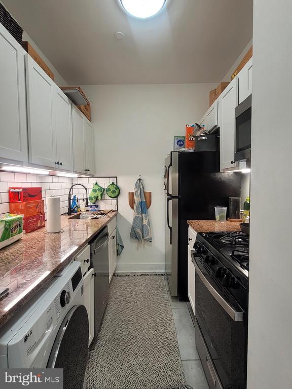 Spacious, updated one bedroom on a high floor of Parc Rittenhouse right on Rittenhouse Square. Enter past a foyer with large coat closet into the spacious living/dining room with Brazilian cherry hardwood floors and two large windows. Off of the foyer is the renovated galley-style kitchen with white shaker cabinets, granite countertops, subway tile backsplash, stainless steel appliances, and tile floor. The generously sized bedroom has a large wall closet, two oversized windows, and carpeted floor. The marble appointed bathroom has a single vanity and tub shower. There is an LG washer/dryer in the kitchen. Residents of Parc Rittenhouse enjoy world class amenities and services including a 24 hour doorman; an amenities suite that includes a state-of-the-art fitness center and resident lounge with pantry; media room; outdoor rooftop pool club with a large pool deck, full size pool, kids pool and hot tub; garage parking below the building for an additional fee; and three amazing restaurants on the ground floor, Stephen Starr’s Parc, Devon Seafood and Via Locusta.