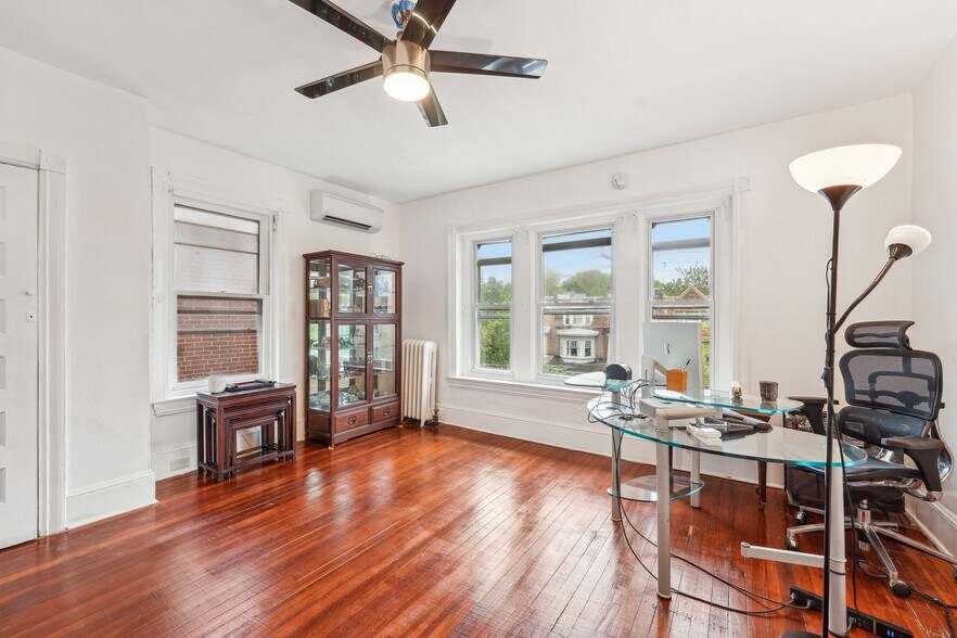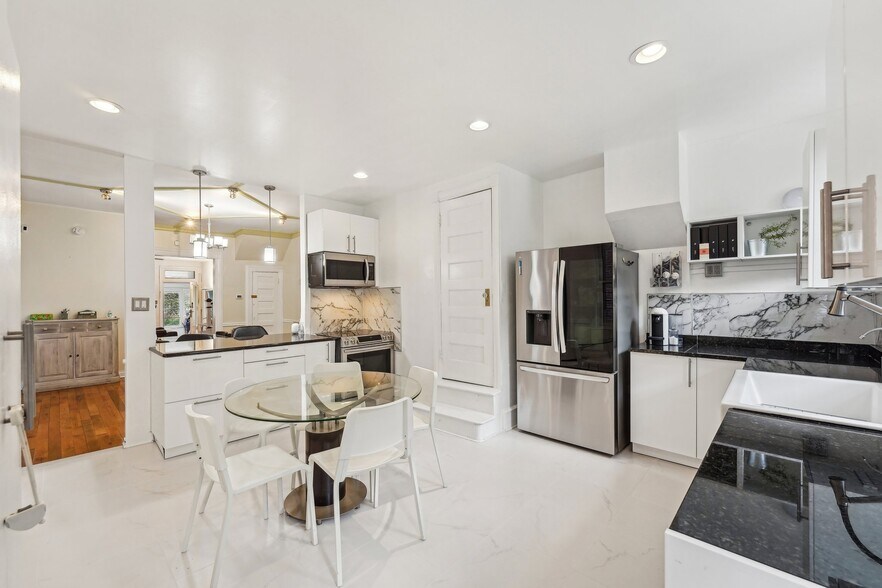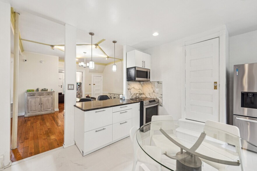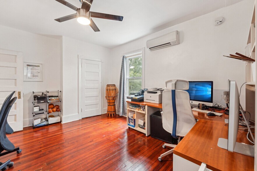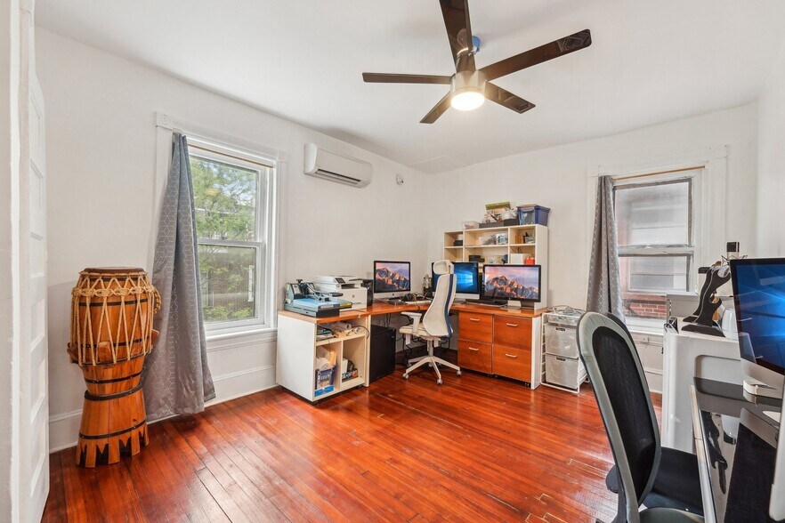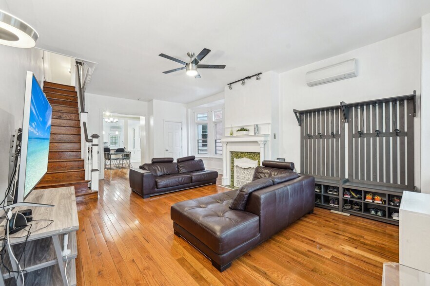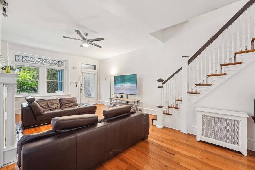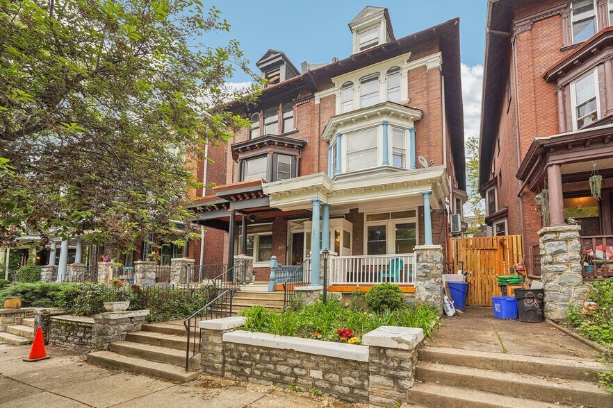 Charming Victorian twin in on tree-lined block in the Penn Alexander School CATCHMENT.? This fine home (c. 1904) offers 5 bedrooms, a family room, bonus/office room, 3.5 baths, and a covered front porch and large rear patio. It blends historic elegance with modern upgrades and is ideal for anyone who wants to live in the vibrant and desirable Garden Court neighborhood of University City. ? Exterior & Outdoor Space: This 20x105-foot property features original Pompeiian brick, a second-floor bay window/side bay window, and a mansard roof with a third-floor dormer window. There is a rebuilt covered front porch, a gated side alley, and a large back patio, perfect for relaxing or entertaining. ? Interior Charm: High ceilings and south, west, and east facing windows flood the home with light. Original details, including a living room decorative fireplace, original solid-wood doors with glass doorknobs, and a grand staircase. The 1st floor boasts hardwood oak floors in the spacious living and dining rooms, a half bath, and a modern renovated eat-in kitchen with granite countertops, new cabinets, tile flooring, a breakfast bar, and premium appliances (Samsung oven/microwave, Bosch dishwasher, LG fridge). A water osmosis system ensures pure and tasty drinking water. Also, a powder room. The 2nd floor offers three large bedrooms with finished original wood floors, a renovated full bathroom, and a preserved butler staircase from the kitchen. The third floor has four bedrooms, another renovated full bathroom, and original wood floors. A finished attic provides versatile space for storage or creative use. The attic space is very usable and adds significant utility to the home. ? Finished Lower Level & Modern Systems: The finished lower level offers excellent usable space to this home and offers high ceilings, exposed joists, a full updated bathroom, composite wood flooring, and laundry (washer, dryer, utility sink). ? Major system upgrades include 200-amp electrical service/panel with three prong grounded/GFCI outlets/Romex throughout the entire home (no Knob & Tube!), new PEX plumbing, and 8 super-efficient mini-split AC/heat pumps keeps the home economically comfortable all year round (2 on the 1st floor, 3 on the 2nd floor, 3 on the 3rd floor). These mini-splits are ideal system--8 zones allows custom cooling and can also supplement the heating. The main heating system is a hot water boiler/radiator system, the best heat there is. The heating system and mini-split system combination is ideal. And seven matching ceiling fans further enhance the comfort. ? Location and Proximity: A short walk takes you to the eclectic shops, restaurants, and cafes of Baltimore Avenue and bustling University City. Enjoy nearby green spaces like Clark Park, a community hub for festivals and markets, or The Woodlands, a historic estate with tranquil walking paths, both within a 10-minute stroll. West Philly’s wide residential streets make driving and parking a breeze, while the area’s high Walk Score® and Bike Score® invite car-free exploration of local gems, from cozy coffee shops to vibrant eateries. Also close to the El (MFL), Baltimore Avenue trolleys, and multiple bus routes, this home ensures effortless commutes to Center City, 30th Street Amtrak Station, or beyond. Also close to major highways and about 12 minutes to Center City by car or bike. Super easy commute to Upenn, Drexel, the Penn Health System, CHOP, and the science technology corridor. ?