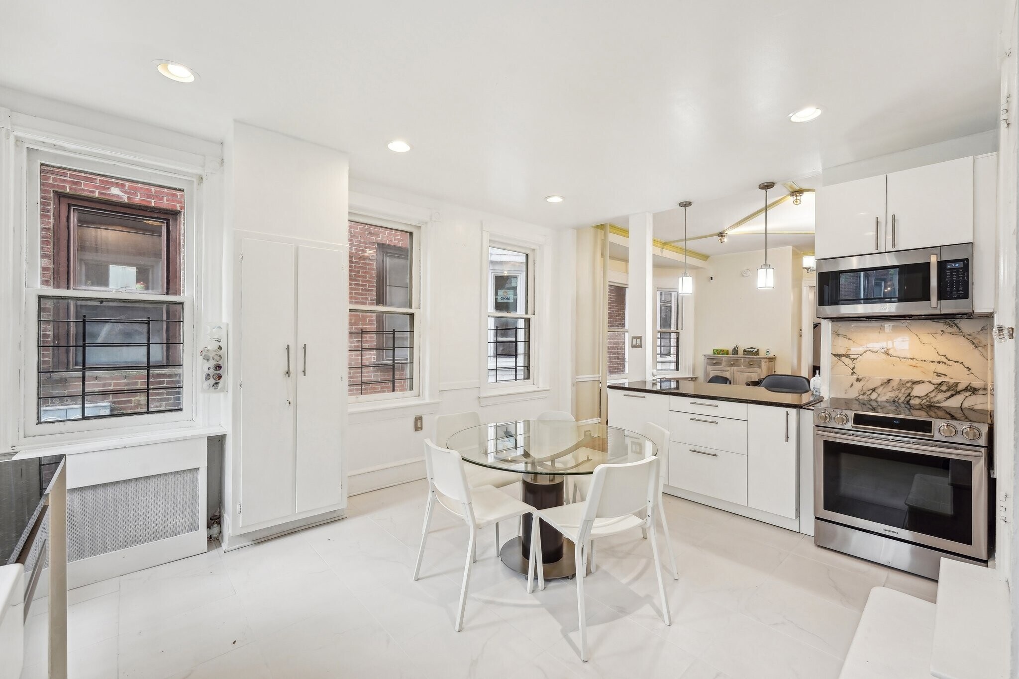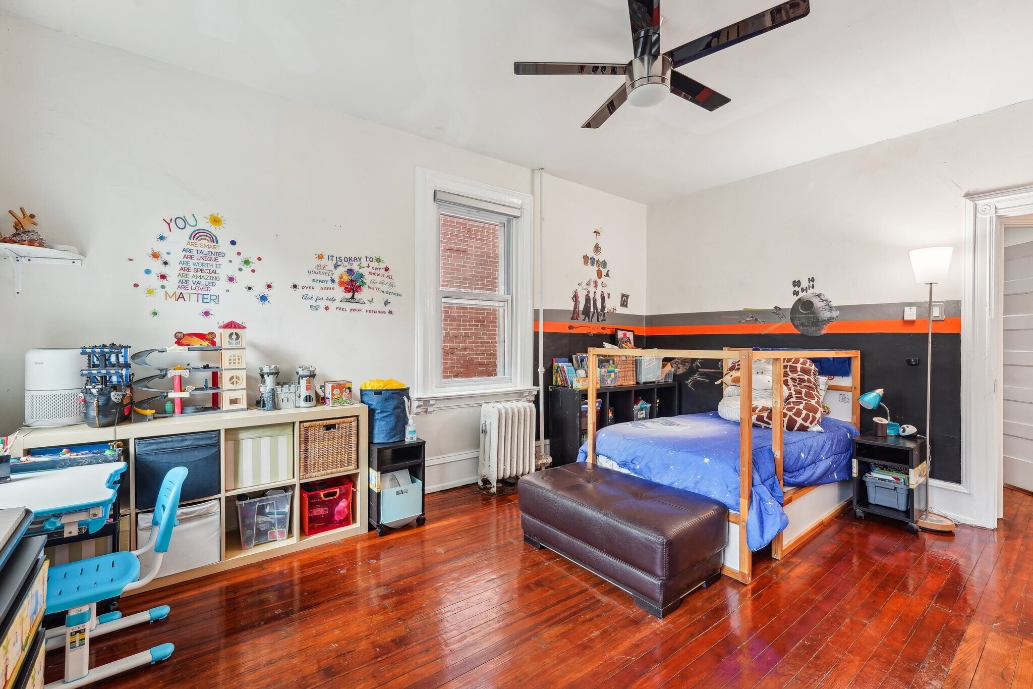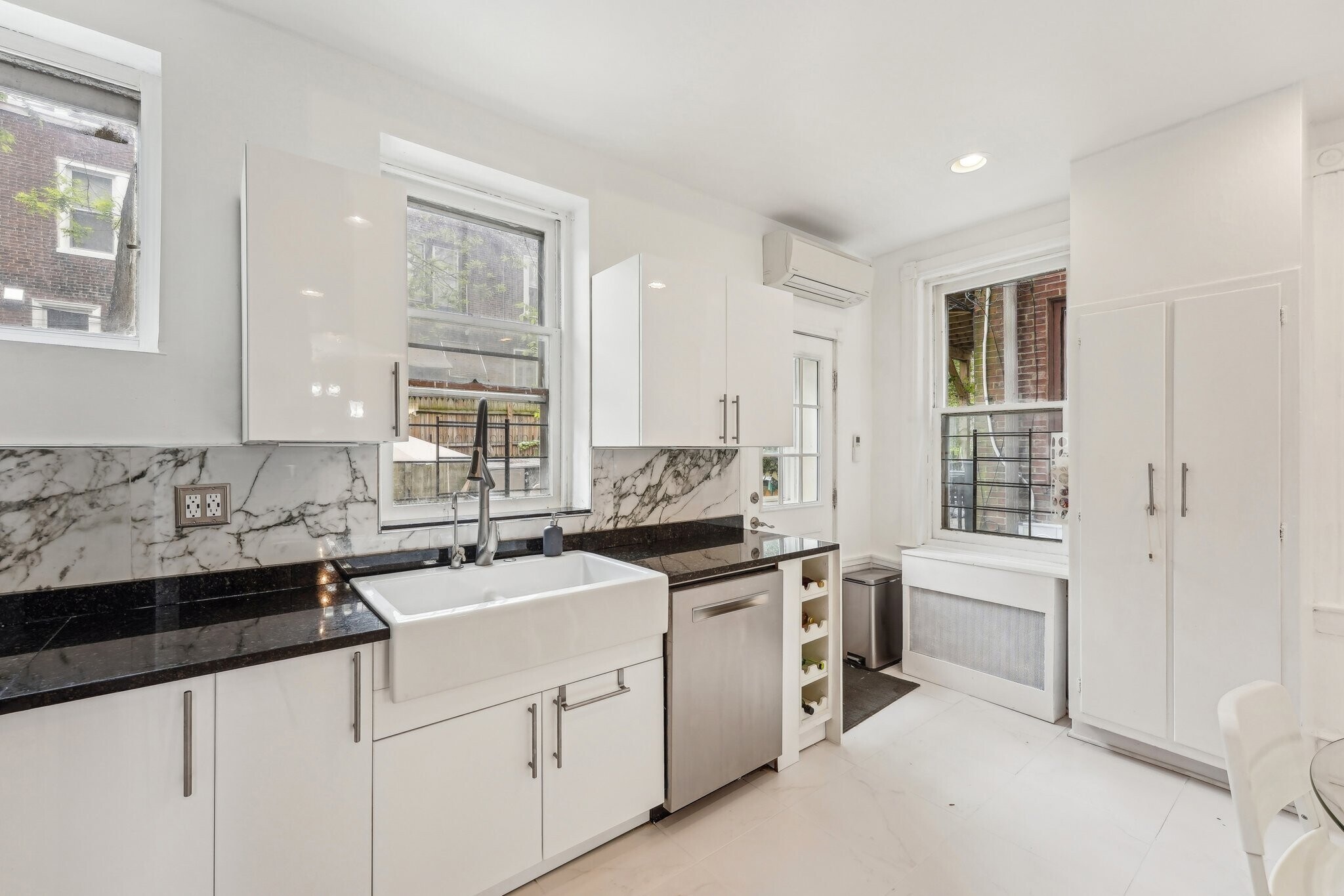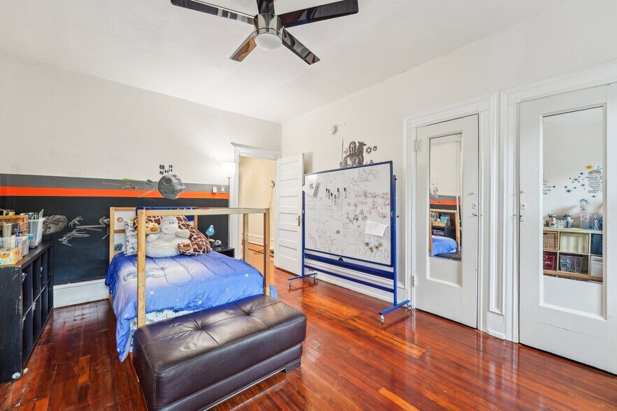 Charming Victorian twin in on tree-lined block in the Penn Alexander School CATCHMENT.? This fine home (c. 1904) offers 5 bedrooms, a family room, bonus/office room, 3.5 baths, and a covered front porch and large rear patio. It blends historic elegance with modern upgrades and is ideal for anyone who wants to live in the vibrant and desirable Garden Court neighborhood of University City. ? Exterior & Outdoor Space: This 20x105-foot property features original Pompeiian brick, a second-floor bay window/side bay window, and a mansard roof with a third-floor dormer window. There is a rebuilt covered front porch, a gated side alley, and a large back patio, perfect for relaxing or entertaining. ? Interior Charm: High ceilings and south, west, and east facing windows flood the home with light. Original details, including a living room decorative fireplace, original solid-wood doors with glass doorknobs, and a grand staircase. The 1st floor boasts hardwood oak floors in the spacious living and dining rooms, a half bath, and a modern renovated eat-in kitchen with granite countertops, new cabinets, tile flooring, a breakfast bar, and premium appliances (Samsung oven/microwave, Bosch dishwasher, LG fridge). A water osmosis system ensures pure and tasty drinking water. Also, a powder room. The 2nd floor offers three large bedrooms with finished original wood floors, a renovated full bathroom, and a preserved butler staircase from the kitchen. The third floor has four bedrooms, another renovated full bathroom, and original wood floors. A finished attic provides versatile space for storage or creative use. The attic space is very usable and adds significant utility to the home. ? Finished Lower Level & Modern Systems: The finished lower level offers excellent usable space to this home and offers high ceilings, exposed joists, a full updated bathroom, composite wood flooring, and laundry (washer, dryer, utility sink). ? Major system upgrades include 200-amp electrical service/panel with three prong grounded/GFCI outlets/Romex throughout the entire home (no Knob & Tube!), new PEX plumbing, and 8 super-efficient mini-split AC/heat pumps keeps the home economically comfortable all year round (2 on the 1st floor, 3 on the 2nd floor, 3 on the 3rd floor). These mini-splits are ideal system--8 zones allows custom cooling and can also supplement the heating. The main heating system is a hot water boiler/radiator system, the best heat there is. The heating system and mini-split system combination is ideal. And seven matching ceiling fans further enhance the comfort. ? Location and Proximity: A short walk takes you to the eclectic shops, restaurants, and cafes of Baltimore Avenue and bustling University City. Enjoy nearby green spaces like Clark Park, a community hub for festivals and markets, or The Woodlands, a historic estate with tranquil walking paths, both within a 10-minute stroll. West Philly’s wide residential streets make driving and parking a breeze, while the area’s high Walk Score® and Bike Score® invite car-free exploration of local gems, from cozy coffee shops to vibrant eateries. Also close to the El (MFL), Baltimore Avenue trolleys, and multiple bus routes, this home ensures effortless commutes to Center City, 30th Street Amtrak Station, or beyond. Also close to major highways and about 12 minutes to Center City by car or bike. Super easy commute to Upenn, Drexel, the Penn Health System, CHOP, and the science technology corridor. ?