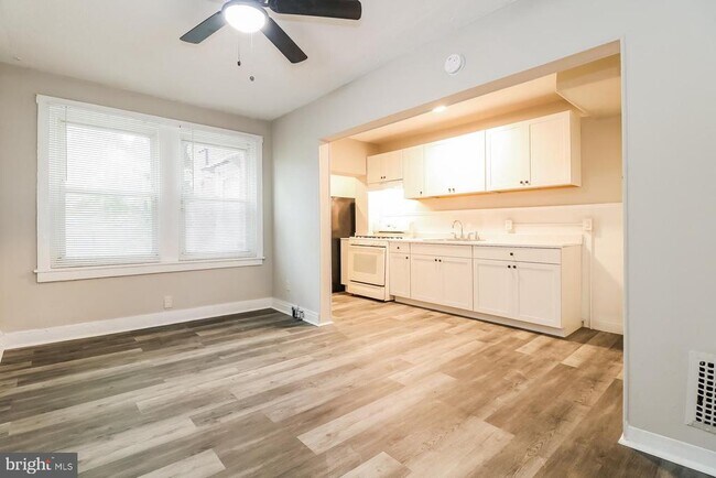 This 3-bedroom, 1-bathroom two-story home in Philadelphia, PA offers a comfortable layout with inviting interior spaces and convenient outdoor features. A covered front patio provides a welcoming entry and a pleasant spot to enjoy time outside. Inside, the living room features LVP flooring and an arched opening that leads into the dining area, adding architectural character and a natural flow between spaces. Neutral paint tones run throughout the home, creating a cohesive and comfortable interior. The dining area offers a defined space for meals and gatherings and connects easily to the kitchen. The kitchen includes crisp white upper and lower cabinetry along with matching white appliances, including an oven and refrigerator, providing a clean and functional setup for daily use. Upstairs, all three bedrooms feature LVP flooring and ceiling fans for added comfort. The full bathroom is conveniently located between the bedrooms and includes a tub and shower combination. Out back, a patio provides additional outdoor space suitable for relaxing or enjoying fresh air. Located under 20 minutes from downtown Philadelphia, this home offers easy access to shopping, dining, public transportation, and everyday city conveniences. Landlord uses appfolio and all applications are done through the portal.