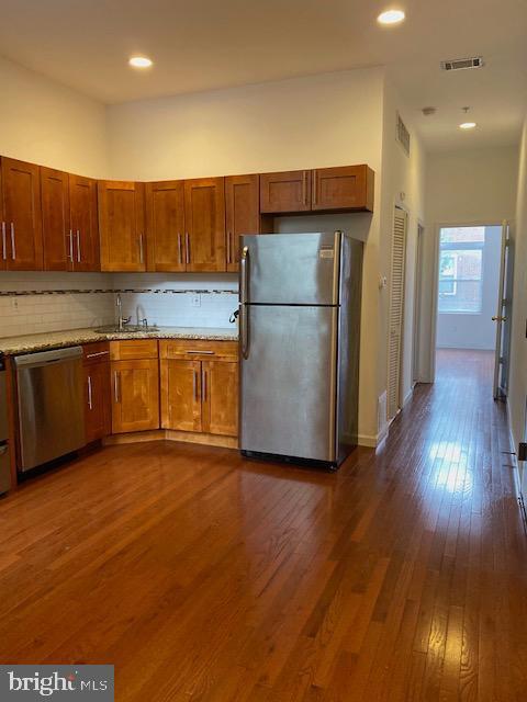 2 Bedroom 2 bath newly renovated apartment located on the Full Floor of 2nd floor. Close to 1500 square foot with split floor plan. High ceiling, Wood floor through out, high end appliances with granite countertop in the kitchen PLUS WASHER AND DRYER in the unit. Central air/heat for comfort.