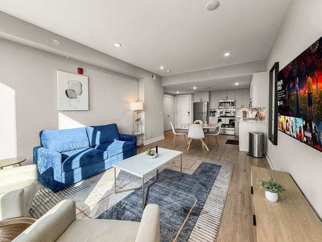 Nestled in a vibrant neighborhood, this charming 1-bedroom apartment offers a delightful retreat in the heart of the city. Located just steps away from bustling streets and cultural landmarks, this space is ideal for couples or solo travelers seeking a comfortable stay with easy access to the city's attractions. This inviting 1-bedroom apartment is thoughtfully designed to cater to all your needs for a carefree and enjoyable stay. Step into the inviting living room, a stylish and comfortable space designed for relaxation and entertainment. The room is tastefully furnished with a plush sofa bed, perfect for sinking into after a day of exploring the city. Enjoy your favorite movies on the flat-screen TV, or simply unwind with a good book in the cozy ambiance. The fully equipped kitchen features modern appliances and everything you need to whip up a delicious meal. Enjoy your culinary creations at the dining table. Retreat to the bedroom, where a comfortable queen-size bed awaits, promising a restful night's sleep. The bedroom also offers plenty of storage space for your belongings, ensuring a clutter-free environment throughout your stay. Pets are allowed depending on size. The following additional per pet cleaning fee applies: 1-4 nights: $25 per night, 5-29 nights: $200, and 30+ nights: $300. This apartment's prime location allows you to explore the city with ease. Discover local eateries, trendy boutiques, and cultural attractions just minutes from your doorstep. Whether you're here for business or leisure, this cozy apartment offers a perfect blend of comfort and convenience for your stay in the city. Surveillance cameras are in the hallways for security and a Minut device is in the unit for noise level monitoring. No shoes are allowed in the house and please do your dishes before leaving. No smoking is allowed indoors, and if there is evidence of smoking indoors, a $500 fine will be imposed. [SI]