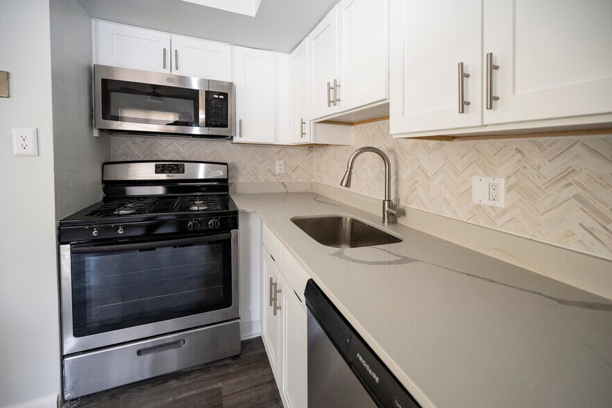 Full Stainless Steel Appliances* (renovated units) Large open floor plan Large Sunlit windows Washer and dryer Plank Flooring and carpeting throughout Private entry Exquisite Quartz counters Unique hand cut stone backsplash* (renovated units) *island (townhomes only) And so much more!