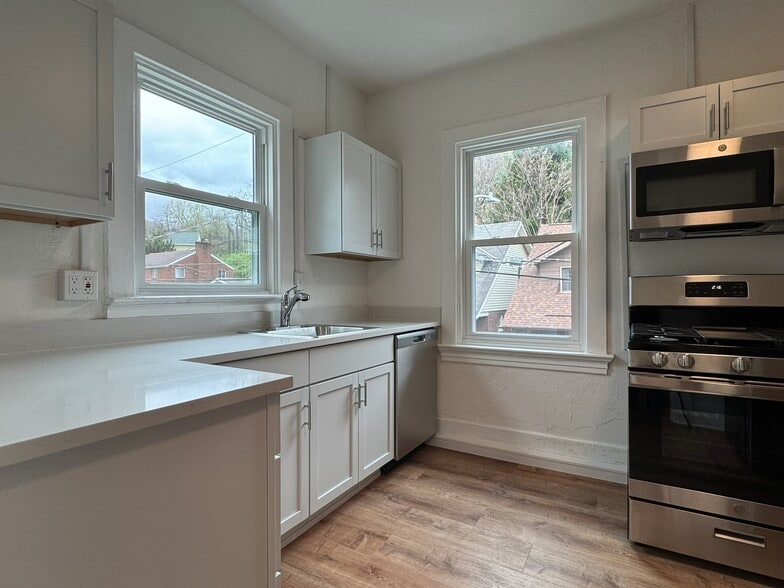 DescriptionJust finished a FULL renovation!!! Be the first to live in this gorgeous second-floor 2BR/1BA apartment in Millvale. The fully-equipped kitchen features quartz countertops and a full set of stainless steel appliances, including a dishwasher and garbage disposal. The living room opens onto a private porch where you can enjoy a cup of coffee in the morning or unwind with an evening beverage. The bathroom has two vanities, and the apartment also features brand new luxury wide-plank flooring throughout. A full-size washer and dryer are available for use in the basement for free and are shared with only one other apartment.