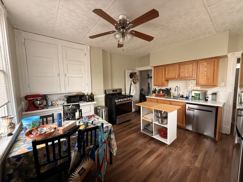 Very nice, renovated house in the heart of Bloomfield. Close to all of the shops, restaurants and entertainment as well as public transportation, Children's and West Penn hospitals and Carnegie Mellon University and the University of Pittsburgh. Large kitchen, living room, two same size bedrooms with large closets, one bathroom upstairs, lots of storage in the basement with a washer and dryer. Fenced in shared backyard Central A/C Quiet Dead End Street with lots of parking space Cat or Small dog with deposit and monthly fee Available early June $1,500.00