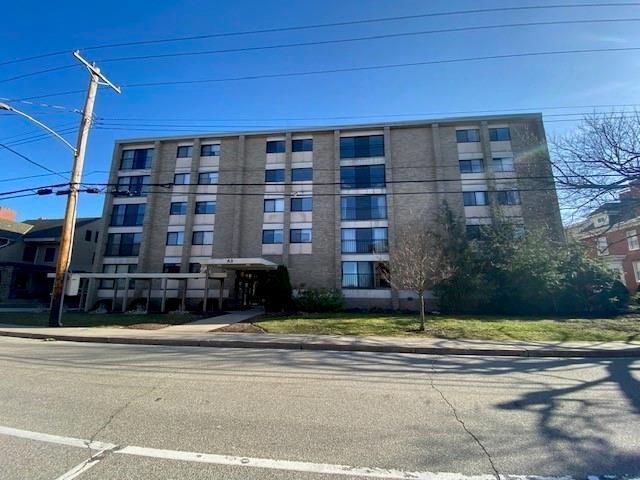 Walk to Washington Road business district. Restaurants, coffee shops Mt. Lebanon Library, bank and a short walk to the "T". Elevator building. Intercom system. Unit is on penthouse level. fifth floor. 1580 square feet living space. 24x20 living room, 25x12 combo dining room/office. Kitchen 10x8. MBR 15x13, 2nd bedroom 13'5x13'9. 3rd bedroom 13x11, Living room and bedrooms are wall to wall carpet. Kitchen and dining room/office are plank flooring. Two full ceramic tile baths with walk- in showers, plus a hall powder room. Unit is bright. Fresh neutral paint. Rent includes gas, water, sewer and trash. - gas heat. Tenant pays electric, cable, parking onsite. Coin-op laundry every floor. Storage locker in basement. One car inside parking $75.00 per month. Driveway in back leads to access to intregal garage. No pets non smokers. Available for immediate occupancy.