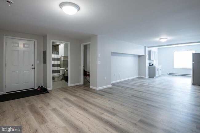 Spacious and bright 1 bedroom, 1 bath apartment on the 1st floor. Recently updated, open floor plan with luxury vinyl plank flooring, a large kitchen with lots of cabinet space and all appliances, private bedroom, and beautiful tile bathroom, as well as a stackable washer/dryer. Off street parking for one car. Garage is NOT included nor available for rent.