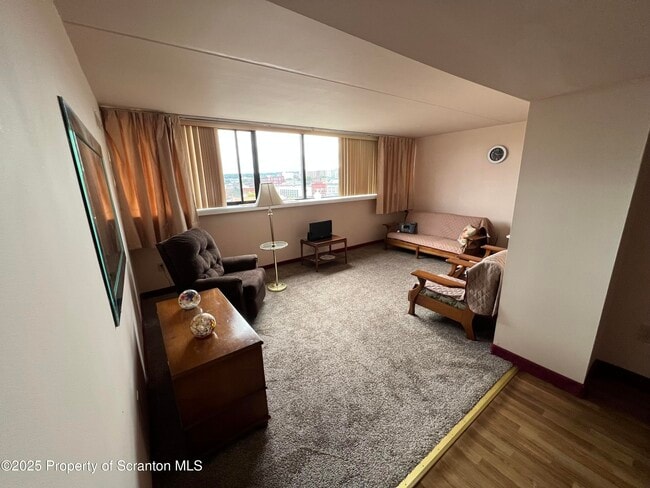 Furnished 2 Bed - 2 Bathroom apartment available beginning October 15th. Enjoy the Amazing Views while living the simple life in the heart of downtown Scranton. Walking distance to restaurants,the mall,Univ. of Scranton and much more. This 6th floor corner 2 bedroom/2 bathroom is located in a secure building with two elevators and laundry rooms on each floor. Optional parking garage located directly next to building with covered access. Water,sewer and trash included in rent. No smokers. Building only permits one (1) small pet per apartment which must be under 30 pounds.