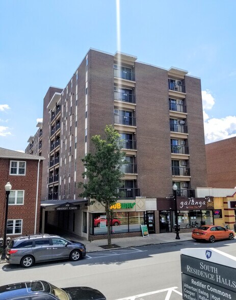 University Towers is located in the heart of downtown State College. The building just went through a beautiful renovation in all the common areas including an elevator update. This Large 1 bedroom unit is fully furnished for 1, 2, or 3 tenants. The large living and dining area opens up to a balcony overlooking State College. Subway restaurant is just downstairs with dozens of other eateries, stores, and nightlife just steps away. Penn State's campus is directly across the street with the HUB just a few minutes walk away!