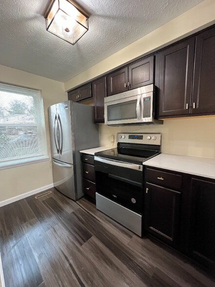 Gorgeous Gorgeous Gorgeous! YOU'VE GOT TO SEE THIS TOTALLY RENOVATED TOP TO BOTTOM 2 BED TOWNHOUSE. STUNNING ESPRESSO MAPLE SHAKER-STYLE CABINETRY W/QUARTZ COUNTERTOPS, UNDERMOUNT SINK, GOOSENECK FAUCET, DISPOSAL, STAINLESS APPLIANCES, OVER-RANGE MICRO. BRAND NEW LAMINATE FLOORING THRUOUT THIS OPEN FLOWING FLOOR PLAN. NEW BATHROOM INCLUDES NEW VANITY, TUB/SHOWER, FLOOR, MEDICINE CABINET, ALL NEW LIGHTING & CARPET & DOORS & PAINT THRUOUT, NEWER AC & FURNACE, NEWR HWH, NEW STORM DOOR W/SELF-STORING SCREEN ORDERD, CARPET, PAINT, LARGE MASTER W/DOUBLE CLOSETS, NEWER VANITY IN Dressing Area & Direct Access to BRAND NEW BATH! Queen Sized 2nd Bedroom W/full wall of closets. NEWER Washer & Dryer. NEWER GARAGE DOOR W/OPENER & KEYPAD, AND STORAGE. ENJOY THE Pool, clubhouse, walking trails, tot lots! VERIFIABLE INCOME 3 X'S THE RENT. CREDIT OF 700+ SECURITY DEPOSIT REQUIRED. Text for Showing