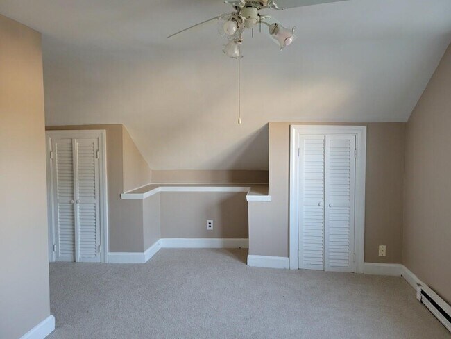 1 bedroom apartment on second floor new carpets and floor covering all newly painted Ready to move in! onsite parking no smoking no pets . Private deck overlooking back yard tenant pays electric, stove and refrigerator included.