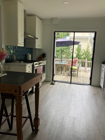 The kitchen opens out to a deck and fenced in yard, perfect for those who enjoy indoor/outdoor living.