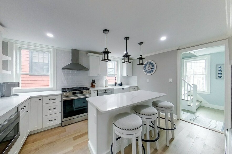 Available for AUGUST 2026 ONLY: $12,000 (includes all utilties - $2000 security deposit): Welcome to downtown Newport living at its finest! This beautifully renovated 4-bedroom, 2-bath 2nd and 3rd floor townhouse is just a stroll from the vibrant energy of Thames Street, with Newport's best restaurants, boutiques, and breathtaking waterfront views practically at your doorstep. Hassle-free living in a meticulously updated space showcasing modern finishes throughout. Enjoy cooking in this gourmet kitchen with stainless steel appliances and a large center Island open to the living room. 2 bedrooms and a full bath on this floor with in unit laundry! Head upstairs and find a sitting room, another full bath and 2 bedrooms. You'll appreciate the private entrance and the added comfort of mini-split ductless AC. One street parking pass is included for one vehicle. Sorry no pets.