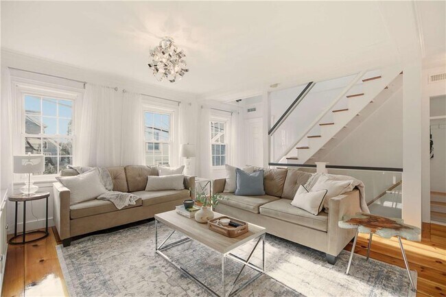 Laura’s Landing - Rooftop Deck with Water Views Spacious two-story apartment in Newport featuring second and third floor living topped by a private rooftop deck with water views. The main level offers an open layout with a bright living area,dining space,and updated kitchen,along with two queen bedrooms,a full bath,and a half bath. The upper level includes a loft-style sitting area,two additional bedrooms (one full,one with two twins),and a full bath. The rooftop deck provides an elevated outdoor space overlooking the surrounding rooftops and harbor area. Additional features include an in-unit washer and dryer and driveway parking for up to two vehicles. Ideally located within walking distance to Thames Street,Bowen’s Wharf,Bannister’s Wharf,and Cliff Walk,with easy access to Easton’s Beach and the historic mansion district. Part of a multi-unit property with shared outdoor areas. June: $8,500 MLS ID 1411314