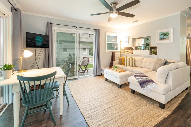 Available 6/5/25 for a minimum 30-day lease with a longer lease preferred; please include the desired move-in date and length of lease with all inquiries. Showings will not begin until 6/1. Welcome to your serene retreat in West Ashley! This delightful 2-bedroom, 1-bathroom fully furnished guesthouse offers the perfect escape from the downtown bustle while keeping you conveniently close to Charleston's finest attractions. Nestled in a tranquil neighborhood, this gem boasts a screened-in porch where you can unwind with a captivating book or simply bask in relaxation. For biking enthusiasts, the West Ashley Greenway trail awaits just steps away. Layout - Comfortable living area with a sectional sofa and a 32" Smart TV for your entertainment - Bedroom 1 features a queen bed and a functional desk - Jack-and-Jill bathroom with a convenient shower/tub combo - Bedroom 2 offers a cozy queen bed - Fully-stocked kitchen to fuel your culinary adventures - Step onto the furnished outdoor porch and embrace the serenity - Laundry room complete with a washer and dryer for your convenience All-Inclusive: Rest easy with all utilities and internet covered in the rental cost. This home is exclusively available fully furnished, ensuring a hassle-free stay. Smoke-Free, Pet-Free: For a comfortable and clean environment, our guesthouse is smoke-free and pet-free. Parking Made Easy: Enjoy off-street parking on our spacious, elongated driveway. It accommodates multiple vehicles parked in tandem, eliminating parking worries. Flexible Lease Options: Available 6/5/25 for a minimum 30-day lease, with the option for longer stays to match your preferences. Share your desired move-in date and lease duration when you inquire. Don't miss out on this exceptional West Ashley retreat. Book now for an unforgettable stay that strikes the perfect balance between tranquility and proximity to Charleston's charm.