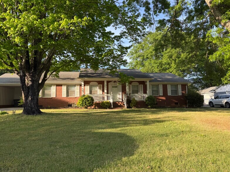 Quiet Eastside neighborhood. Convenient to downtown Greenville and Greer. One level ranch house with recently remodled handicap access shower. Large living room, eat in kitchen as well as a separate dining room, plus a bonus family room with gas fire place. Primary bedroom (14x16) has ensuite bath. Secondary bedroom is also a 14x16. Large fenced in back yard.