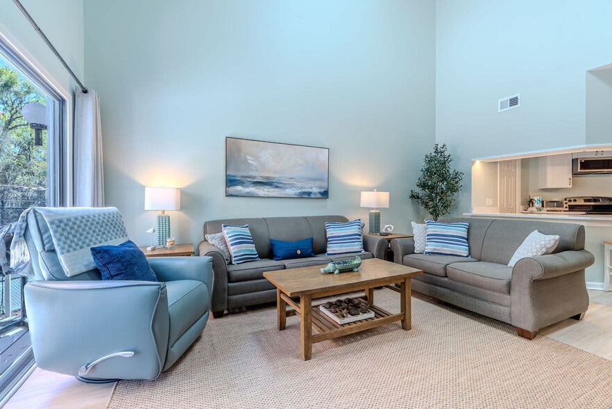 The advertised rate of $4,176/month is the lowest available price, based on a 30 day(s) stay with a move-in date of October 24, 2026. Rates vary depending on the duration of stay, season, and other parameters. For exact pricing and additional pricing components, please visit our website and enter your desired move-in and move-out dates. The rate is applicable when billed upfront; it can be higher if billed in multiple payments. Feel at home in this cheerful, pet-friendly 2-bedroom, 2.5-bathroom coastal condo, nestled in the peaceful Treetops/Ocean Breeze community in Hilton Head. This inviting retreat is perfectly located for easy access to the area's beautiful beaches and the vibrant shops and dining at Coligny Plaza. This apartment features an open living area with a comfy sleeper sofa and a smart TV, with sliding doors opening to a charming patio overlooking the tennis courts. The fully equipped kitchen has everything needed for effortless vacation meals. The first-floor bedroom includes a private en-suite bathroom, while the second-floor bedroom upstairs features its own en-suite bathroom, a smart TV, fresh linens, and ample storage. Step outside to enjoy the beautiful back porch with brand new furniture and a grill, ideal for relaxing after a day at the beach. For your convenience, an in-unit washer and dryer are provided, along with linens, towels, a beach wagon, beach chairs, and beach toys. Guests have access to community pools and free on-site parking. This apartment is pet-friendly. Treetops is a quiet, family-friendly community tucked among oaks and palms. This apartment is within a mile of Coligny Beach Park and Coligny Plaza, a popular area known for its restaurants, shops, live music, and family entertainment. Hilton Head's miles of paved bike paths make exploring easy, with many guests choosing to bike or walk to the beach and Coligny Plaza. Cars are helpful for grocery trips or visiting other island attractions. [SI]