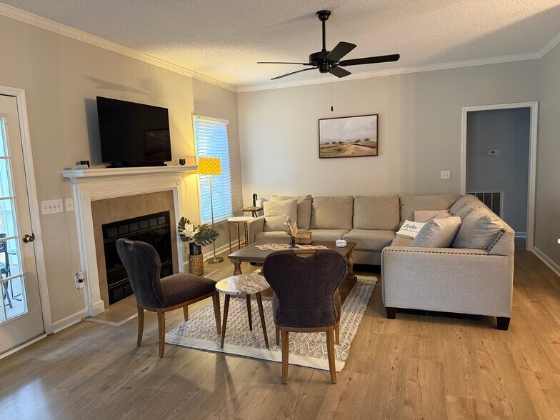 This lovely newly renovated executive rental home is fully furnished and features new LVP flooring living room, dining room, hallway and all 3 bedrooms. Gray paint in common areas and main suite. No carpet so it stays very clean. You will love the serenity and privacy of this wooded lot with a pond view. It is just across the street from the recently updated park nearby including the beautiful Gibson Park with picnic spots, walking trails, bridges, and ponds. Old Mill Brew Pub and concerts at the amphitheater are also walking distance and just minutes away. Great residential areas surround this property including high-end homes. What a cool location for peaceful evenings on your back porch or walk to the park/shows/shopping! Coming soon.... Small dog considered with pet fee and monthly rent fee. Will do 3 or 6 month or 12 month lease Washer, dryer, fridge all included. Fully stocked kitchen, cleaning supplies to get you started and much more. Internet already set up and all you have to do is pay for electricity and any extra TV apps as needed. May be available sooner if ready to rent in mid-January. Case by case basis. Must have credit score above 675.