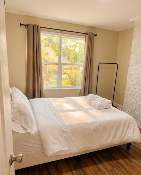 Enjoy this stylish attached unit featuring a bright living room with a cozy fireplace and TV. The fully equipped kitchen boasts a butcher-block island and stainless steel appliances, perfect for home-cooked meals. Relax in the comfortable bedroom and clean, modern bath. Includes on-site parking and a private entrance in a peaceful setting. Ideal for solo travelers or couples seeking comfort and convenience.